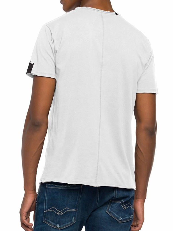 Short sleeve T-shirt with raw cut details & round neck. Replay logo print on the sleeve for casual looks.