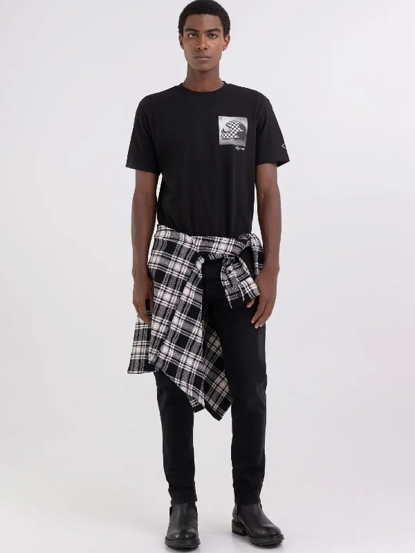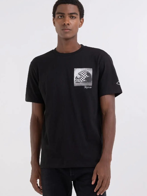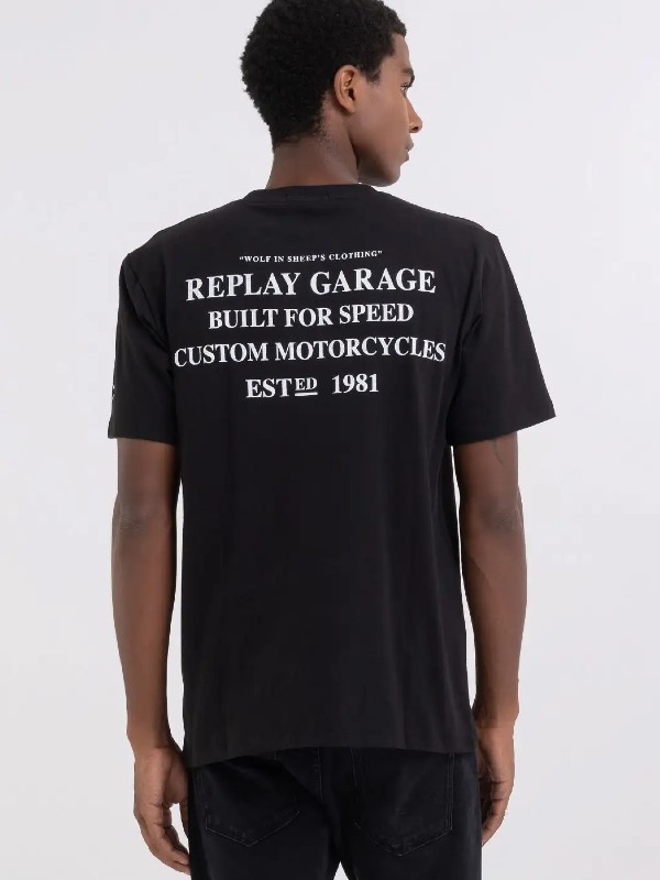 Crewneck t-shirt made of piece-dyed heavy cotton jersey. The short-sleeved garment with regular fit is characterized by the customized motorcycle print at the back.