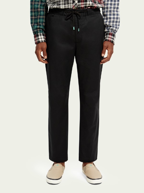 The jogger is designed to comfortably support free movement at any activity level. Featuring a back and side pockets, this regular tapered, ankle-length poplin jogger has an elasticated waist – with a drawstring supplying easy adjustments for a perfect fit.