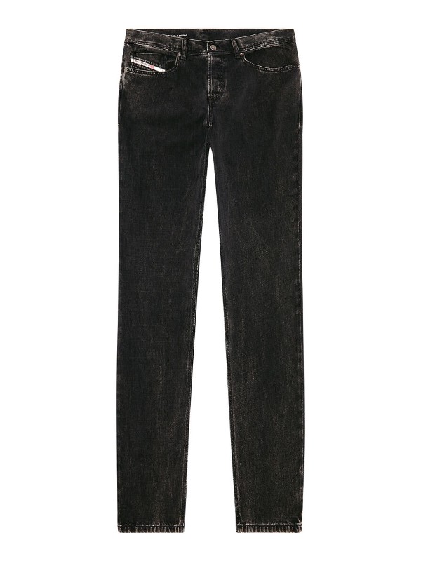 Κλείσιμο με κουμπί, Κλασικές πέντε τσέπες, Κανονική μέση, κωνική εφαρμογή στο πόδι, Ελαστικό βαμβακερό jean.