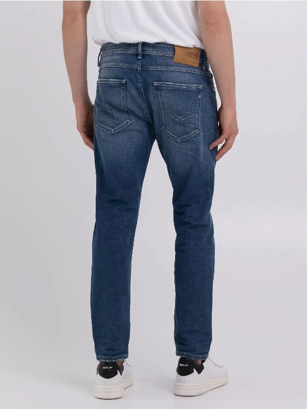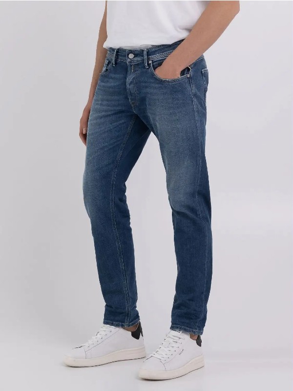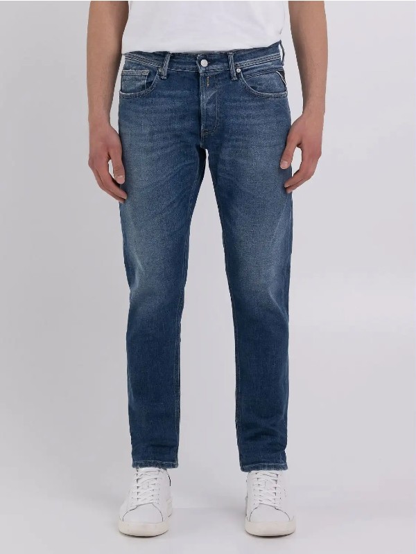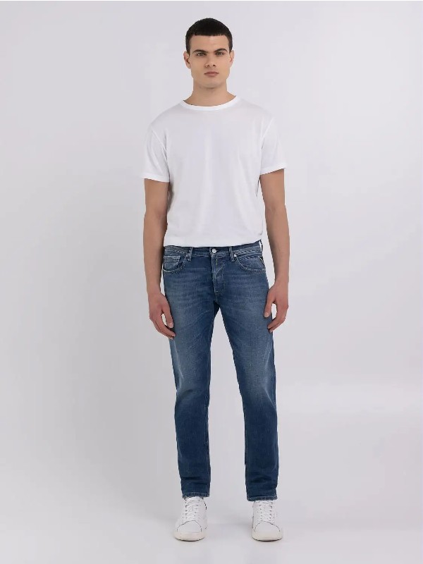 Τζιν με κανονική εφαρμογή με ελαφρώς tapered πόδι για στενή και ταυτόχρονα άνετη εφαρμογή. Με καθαρή και μοντέρνα εμφάνιση, το ρούχο είναι φτιαγμένο από βαμβακερό τζιν indigo 11,5 ουγκιές βαθύ μπλε indigo με μεσαίο τόνο πλύσης. Το τζιν έχει πέντε τσέπες χαρακτηρίζεται από το χειροποίητο ξύσιμο και από το βούρτσισμα που δημιουργεί αντίθετα χρώματα στις χρησιμοποιημένες περιοχές.